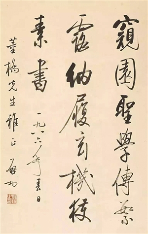 在“金耀基八十書法展”上,著名學者余英時托董橋轉達對金耀基書法的評價,同樣意味深長。余英時表示,他不愿將書法從金耀基的“人生中完全孤立出來”。藝術精神貫穿在金耀基的全部生命之中,書法不過是其中的一環(huán)而已?!笆聦嵣希粌H他以‘語絲’為名的所有散文是藝術的化身,而且他在百萬言的學術論述中,也時時流露出藝術的光芒。”余英時最后點睛一道:“我在室中走動,偶然抬頭看到他贈我的條幅,但我所見到的卻不是書法,而是書法家本人?!钡拇_,見字如見人,人所見的實際是字中所涵養(yǎng)的人格。
