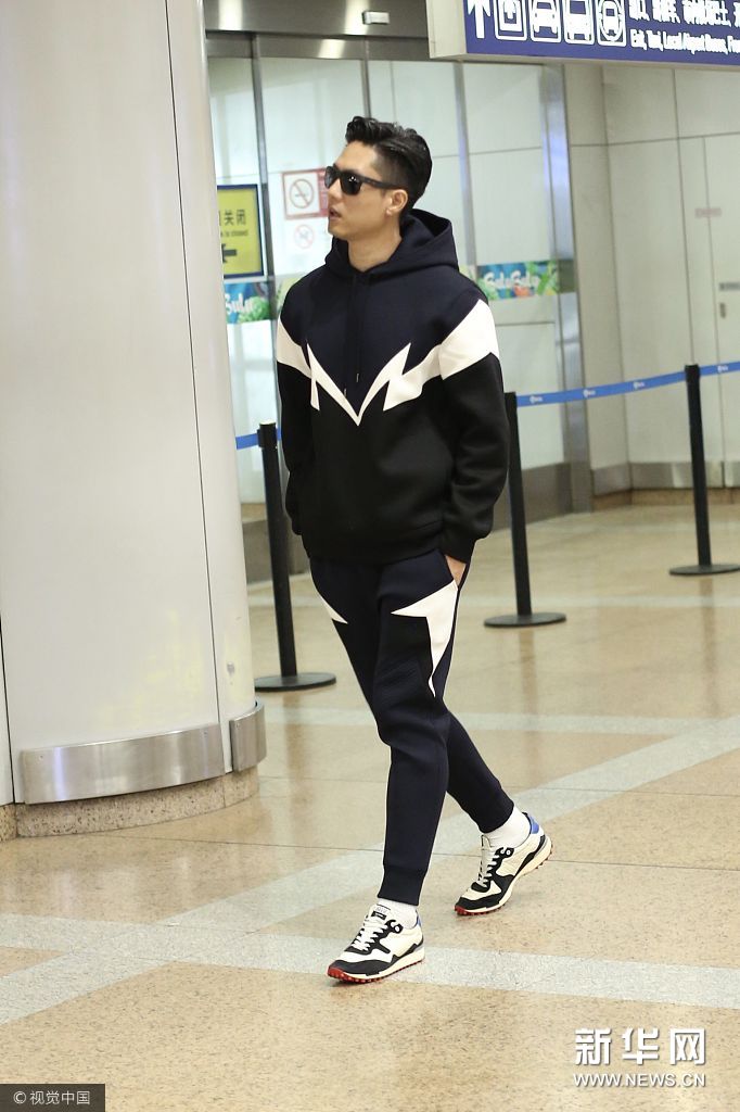 凌瀟肅迎運動套裝低調(diào)現(xiàn)身 戴墨鏡型男范