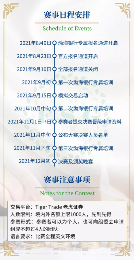 活動(dòng)冠名方——渤海銀行希冀以本賽事的舉辦為契機(jī),通過緊張激勵(lì)而又活潑有趣的模擬投資組合競賽形式、寓教于樂,樹立并培養(yǎng)青年一代對于財(cái)富增長與傳承的正確理念,引導(dǎo)年輕人理解并實(shí)踐綠色投資,促進(jìn)青年一代“財(cái)商”理念與能力的全面提升。