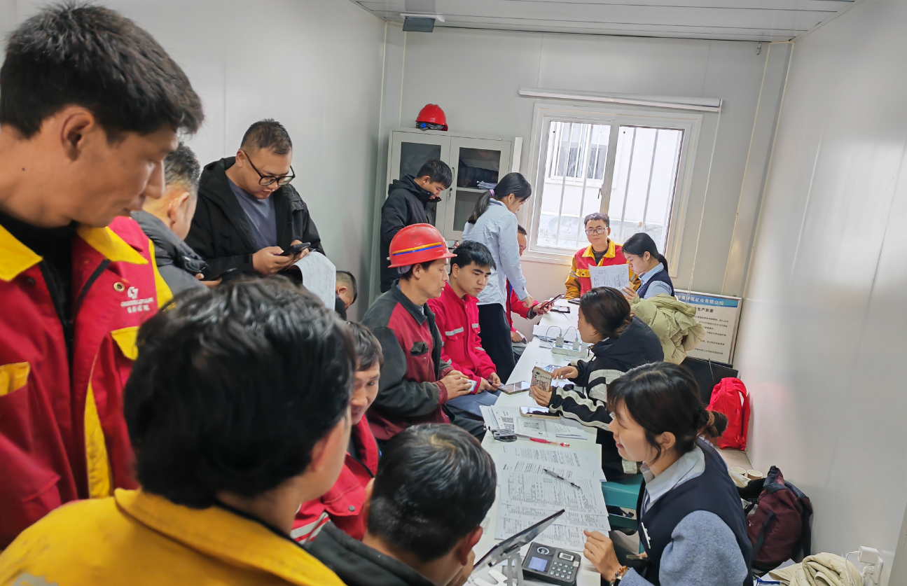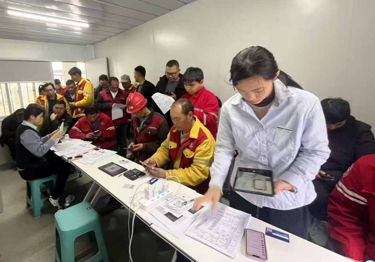 面對(duì)困難,陳嘉濤深知客戶需求無小事。他果斷決定帶隊(duì)前往現(xiàn)場,為當(dāng)?shù)貑T工集中辦理銀行卡開卡及工資代發(fā)相關(guān)手續(xù)。從繁華的深圳到偏遠(yuǎn)的高原,路途遙遠(yuǎn)、舟車勞頓,加上高原反應(yīng)帶來的身體不適,讓整個(gè)團(tuán)隊(duì)面臨嚴(yán)峻考驗(yàn)。但他們沒有絲毫退縮,抵達(dá)后便迅速搭建臨時(shí)服務(wù)點(diǎn),投入到緊張的工作中。