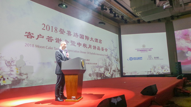 活動(dòng)開始,登喜路國(guó)際大酒店總經(jīng)理譚志堅(jiān)先生為晚會(huì)致辭。譚先生希望借此次品鑒會(huì),讓來(lái)賓對(duì)登喜路月餅有全新的認(rèn)識(shí),更衷心的希望,在這次晚宴上彼此能夠進(jìn)行深入溝通,增進(jìn)互信,加強(qiáng)合作,共敘友誼,共謀發(fā)展!