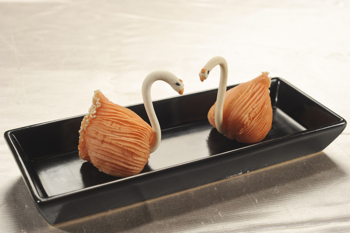 如果說,雅致的餐廳環(huán)境能讓人留下印象,那讓人記住且流連忘返的必定是美味的出品。陶陶居不僅匯集各類廣府名點,而且在傳統(tǒng)點心的基礎(chǔ)上加以改良創(chuàng)新,始終堅持全手工現(xiàn)場制作,在口味和品質(zhì)上獲得各地食客的一致好評。其中,馳名的陶陶居大蝦餃完美呈現(xiàn)十三道褶,顆顆飽滿,外皮晶瑩剔透,包裹住三只鮮蝦仁,鮮美誘人;鮮果榴蓮天鵝酥對傳統(tǒng)的榴蓮酥加以改良,采新鮮榴蓮入餡,原創(chuàng)天鵝造型,造型優(yōu)美,廣獲好評;曾被湖南衛(wèi)視《天天向上》節(jié)目推薦的流沙奶皇豬豬包,則是使用咸鴨蛋新鮮制作而成的,香而不膩,造型可愛,是店內(nèi)最受小朋友喜愛的茶點之一。