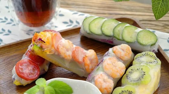 和中式用薄面皮包裹,油炸出來的酥脆春卷不同,越南春卷是用稻米磨制而成的米紙來包裹。