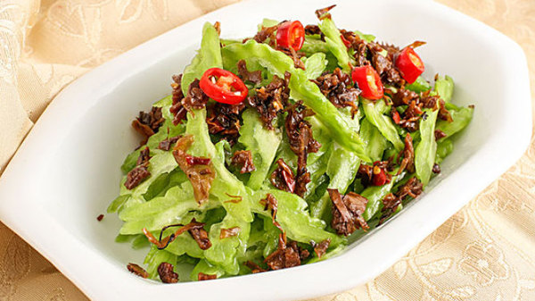 營(yíng)養(yǎng)搭配創(chuàng)意菜 涼瓜豆角炒魚松