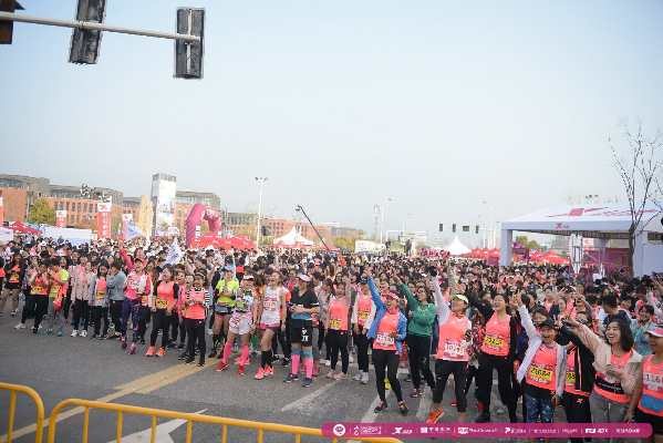 今年賽事現(xiàn)場最大的亮點在于,取消了開賽儀式,僅保留鳴槍一項流程。主會場起點區(qū)域沒有了大型噴繪的主席臺,取而代之的是小巧簡約的發(fā)令臺。上午7點,不間斷的熱身音樂響徹整個甜蜜小鎮(zhèn),運動員們在進入賽道集結(jié)后,配合著音樂,跟隨著健身教練的指引一起熱身。上午8點30分,鳴槍嘉賓們準時登臺鳴槍,全體3000多名跑者一起沖出起點門,化作一片粉紅色的海洋,向著終點奔去?!叭∠_賽儀式對跑者來說是非常貼心的一項舉措,讓我們在進入賽道之后依然能夠繼續(xù)熱身,時間一到準時開跑,整個參賽流程也更加流暢了。”參賽選手在賽事現(xiàn)場直言道,簡化起跑前的儀式流程,對于跑者來說是一種更好的參賽體驗。