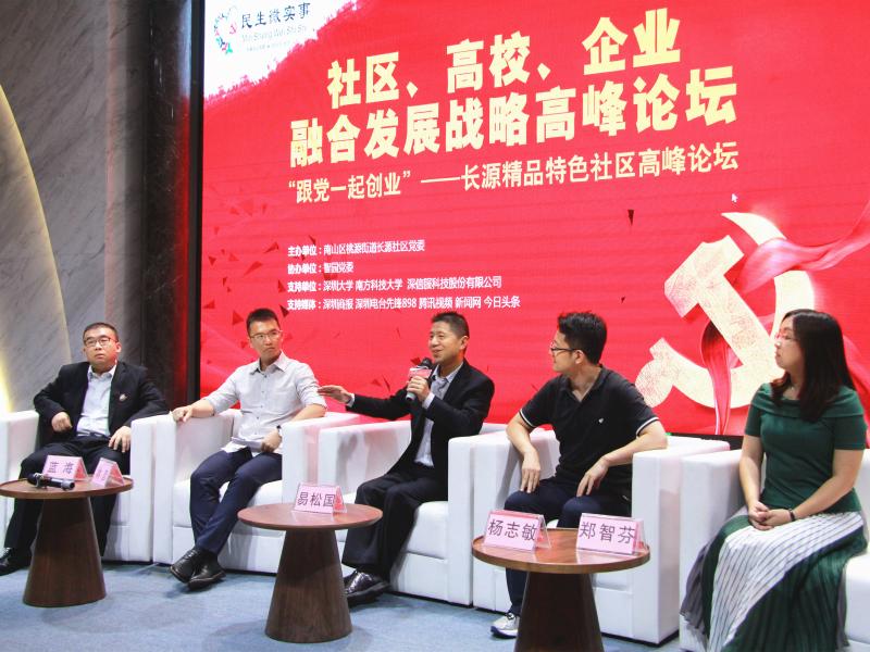 桃源街道黨工委書記黃健表示,本次論壇是智園黨群服務(wù)中心正式開放以來的第一場大型活動,桃源街道黨工委將努力把這里打造成為“一中心兩平臺”,即社區(qū)、校區(qū)、園區(qū)“三區(qū)融合”展示中心,北部片區(qū)園區(qū)黨群服務(wù)平臺,資源共建、共享、共治的對接平臺,把智園和長源片區(qū)打造成為“三區(qū)融合”的典范。嘉賓易松國作為主講嘉賓,進行了《共建、共治、共享視角下的社區(qū)融合》主題演講。隨后嘉賓們圍繞黨建統(tǒng)領(lǐng)的社區(qū)融合建設(shè)中,企業(yè)、高校、社區(qū)如何發(fā)揮各自優(yōu)勢,提供資源與平臺,打造長源精品特色社區(qū)各抒己見。嘉賓林彥結(jié)合本公司的孵化發(fā)展歷程暢談智園的發(fā)展,他表示目前公司已經(jīng)與全國多家高校建立了合作關(guān)系,共同推動創(chuàng)新技術(shù)的產(chǎn)業(yè)化。嘉賓藍海指出:南方科技大學(xué)的迅速崛起,從科研成果產(chǎn)業(yè)化、人才輸送等方面為長源社區(qū)的發(fā)展提供了廣闊的空間。