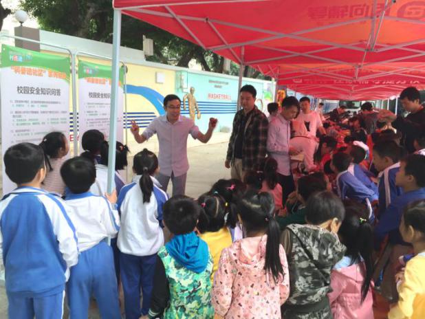 解說員正在向同學(xué)們科普校園安全知識