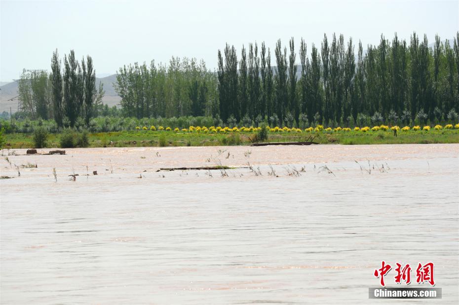7月19日,黃河寧夏中衛(wèi)段入境流量為每秒2040立方米,可見遠(yuǎn)處因水位上漲被淹沒的河灘,隱約能看到稻谷麥穗。據(jù)了解,近日,甘肅、陜西等黃河流域普降大到暴雨,12日12時,黃河1號洪峰進入寧夏,入境流量達到每秒2100立方米,繼2012年以來,黃河寧夏段首次發(fā)布IV級預(yù)警。中新社記者額麗其格 攝