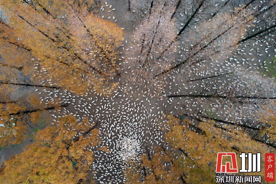 江蘇泗洪5000多只鵝林場吃食,場面壯觀。