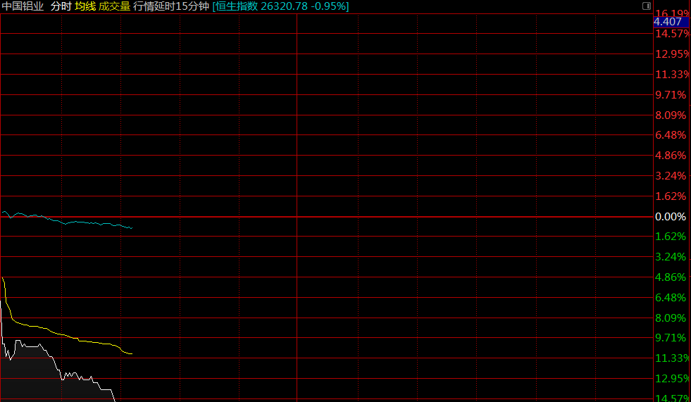 智通財(cái)經(jīng)APP獲悉,中國鋁業(yè)(02600)H股早盤急挫12%,現(xiàn)價(jià)與A股表現(xiàn)背馳,A股漲0.99%。截至9時(shí)58分,跌12.27%,報(bào)價(jià)3.36港元,成交額1.23億。