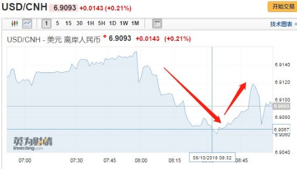智通財(cái)經(jīng)APP獲悉,離岸人民幣兌美元亞市早盤(pán)一度跌逾200點(diǎn),報(bào)6.9155,后短線快速拉升約50點(diǎn)。截至發(fā)稿,報(bào)6.9093,跌143點(diǎn)子,跌幅0.21%。