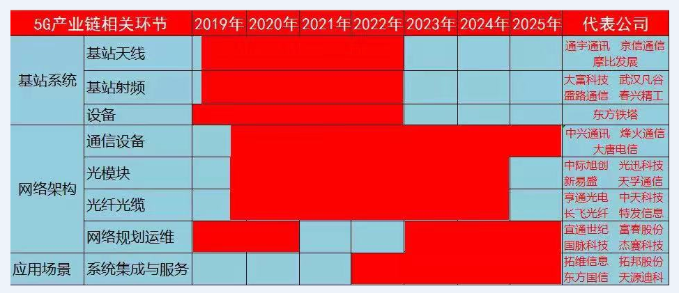 5G產(chǎn)業(yè)鏈受益周期及相關(guān)公司: