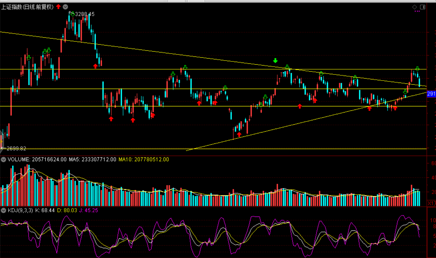 周一兩市股指全天震蕩下跌,各大股指均以中陰線報收。上證指數(shù)收跌1.4%報2962.75點(diǎn),深證成指跌1.69%報10056.21點(diǎn),創(chuàng)業(yè)板指跌1.98%報1736.62點(diǎn);兩市成交5372億元,環(huán)比減少334億元。北向資金全天凈流入17.49億元,為連續(xù)28日凈流入。盤面看建材、儀器儀表、ST板塊漲幅居前,受到集成電路大基金減持三家半導(dǎo)體龍頭公司影響,高位科技股集體殺跌,胎壓監(jiān)測、半導(dǎo)體、養(yǎng)殖及傳媒游戲板塊跌幅居前,眾應(yīng)互聯(lián)(商譽(yù)減210億元值)、酒鬼酒(甜味素傳,環(huán)比)受到利空影響一字跌停。
