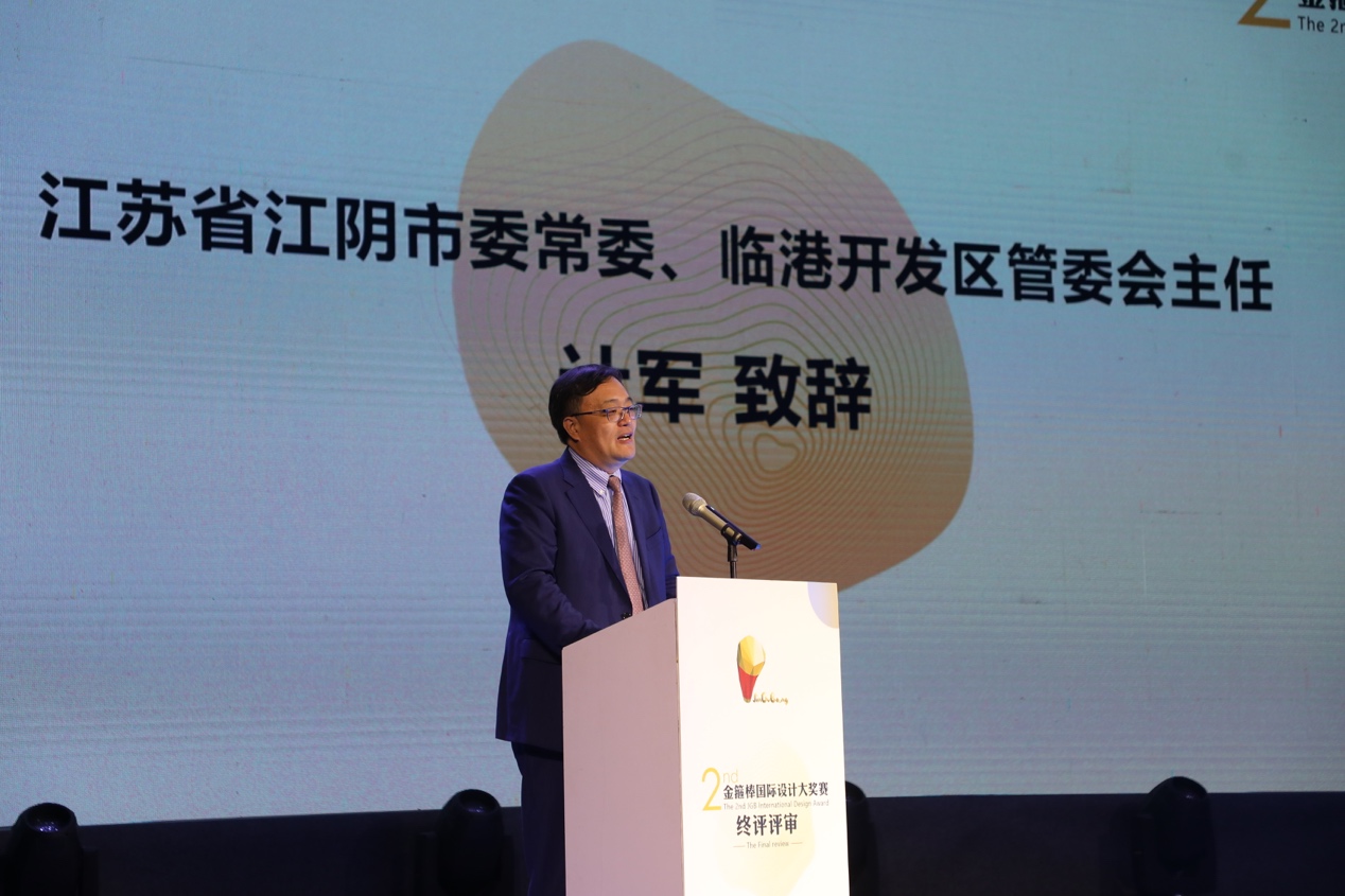 大賽主任評(píng)委、中國(guó)美術(shù)學(xué)院工業(yè)設(shè)計(jì)專業(yè)創(chuàng)始人及學(xué)科帶頭人趙陽(yáng)教授也登臺(tái)致辭。趙陽(yáng)教授回顧了與江陰、與金箍棒設(shè)計(jì)的淵源,高度贊揚(yáng)了本屆大賽倡導(dǎo)質(zhì)樸生活、注重設(shè)計(jì)落地的理念,并預(yù)祝比賽成功。
