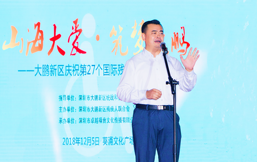 活動(dòng)的總策劃、著名詩(shī)人、深圳市大鵬新區(qū)統(tǒng)戰(zhàn)和社會(huì)建設(shè)局常務(wù)副局長(zhǎng)、大鵬殘聯(lián)理事長(zhǎng)白凌先生說:山海般的大愛來自美麗的深圳大鵬,身殘志堅(jiān)的人士在此筑夢(mèng)、追夢(mèng)直到實(shí)現(xiàn)夢(mèng)想!這是2018年大鵬新區(qū)紀(jì)念“國(guó)際殘疾人日”大型活動(dòng)的目的所在。