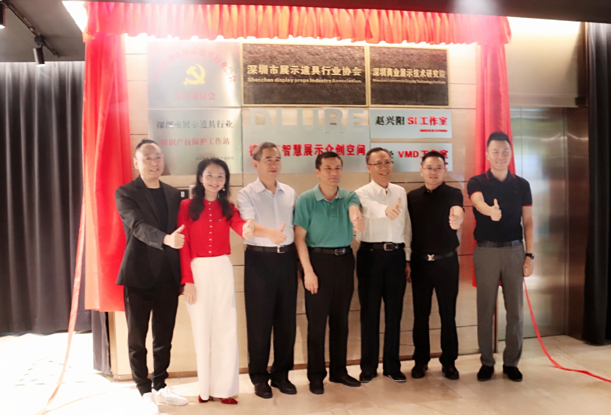 大浪時尚小鎮(zhèn)黨委第一書記劉繼琴、深圳市社會組織管理局副局長孫景明、大浪時尚小鎮(zhèn)建設(shè)管理中心主任曹宇昕、大浪時尚小鎮(zhèn)黨委專職副書記曾鳳,市政協(xié)委員、原市民政局處長駱冰,卡爾丹頓服飾股份有限公司品牌總監(jiān)胡屹,市展示道具行業(yè)協(xié)會創(chuàng)會會長駱詩學,商業(yè)展示技術(shù)研究院、展示道具行業(yè)協(xié)會秘書長蘇建東,共同為商業(yè)展示總部基地揭牌。
