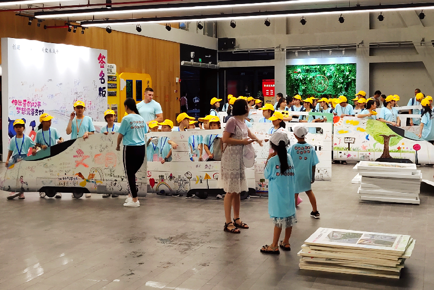 深圳新聞網(wǎng)2019年8月2日訊 兩列長達24米,車身由深圳百名兒童彩繪設計的小火車,帶著他們的夢想,1日下午在深圳龍崗紅立方青少年館“開出”,開啟暑期文明生活之旅。