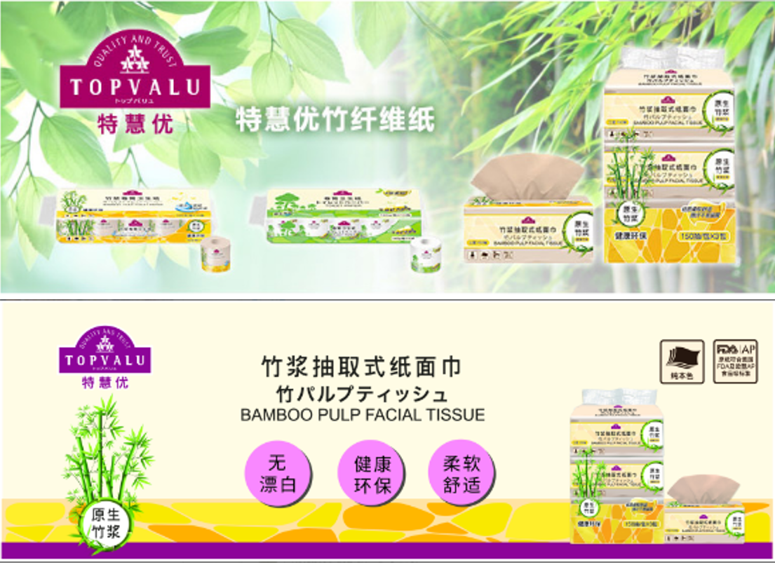 永旺始終對環(huán)境保護高度關注,開發(fā)健康、環(huán)保的、讓顧客放心使用的商品一直是永旺的目標。正是出于這樣的考量,永旺自有品牌TOPVALU(特慧優(yōu))推出了竹漿抽取式紙面巾等系列的環(huán)境友好型商品。由于該商品做到了對環(huán)境無污染,對人體無危害,還獲得了“2018年中國零售自有品牌評選”的“綠色產(chǎn)品獎”。