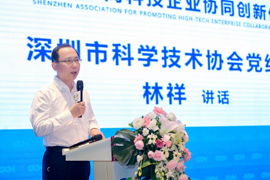 深圳市科學(xué)技術(shù)協(xié)會(huì)黨組書記、副主席林祥代表深圳市科協(xié)對(duì)高促會(huì)的成立表示熱烈的祝賀,向?yàn)樯钲谑邪l(fā)展作出貢獻(xiàn)的廣大科技工作者致以崇高的敬意,深圳市科協(xié)將圍繞中央、省委、市委的決策部署,在中國(guó)科協(xié)、省科協(xié)的指導(dǎo)下,按照雙區(qū)建設(shè)的要求,積極探索科技與經(jīng)濟(jì)相融合的新機(jī)制,形成大力促進(jìn)科技成果轉(zhuǎn)化的熱潮。希望高促會(huì)可以精準(zhǔn)發(fā)力,促進(jìn)深圳市科學(xué)普及與科技創(chuàng)新比翼齊飛,努力創(chuàng)建社會(huì)主義現(xiàn)代化強(qiáng)國(guó)的城市范例。