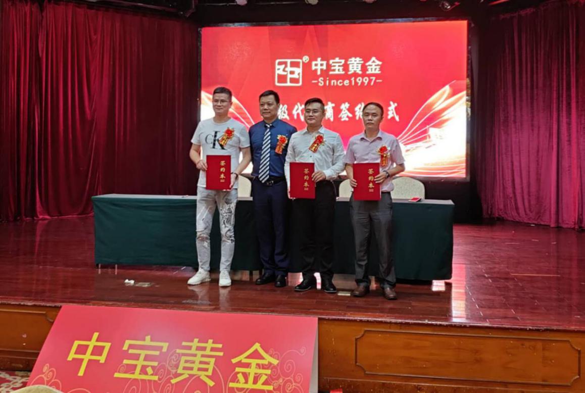 現(xiàn)場(chǎng)邀請(qǐng)一飛老師講解新零售,并現(xiàn)場(chǎng)開啟中寶黃金直播間。隨后還進(jìn)行了簽約儀式,中寶黃金與中國工藝集團(tuán),阿瑪尼品牌,北京榮寶齋,達(dá)成戰(zhàn)略合作伙伴關(guān)系。