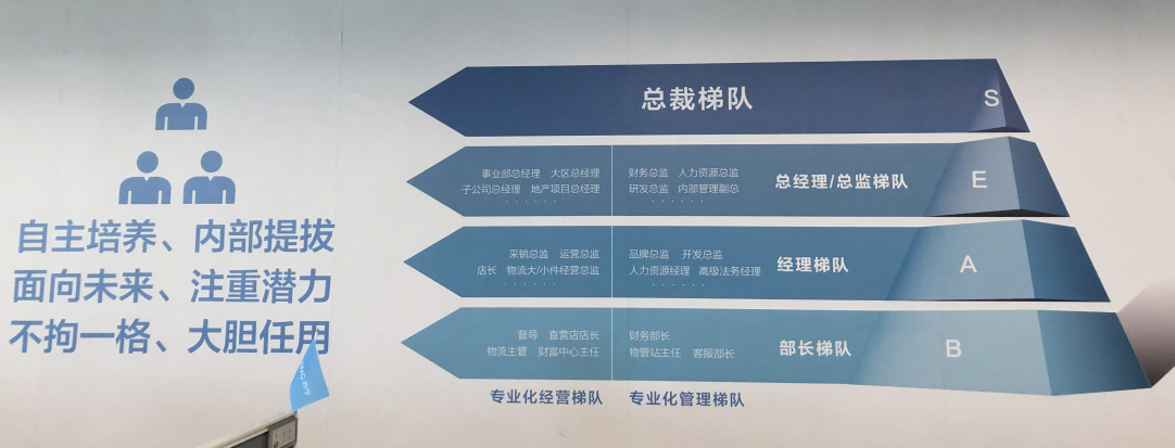 蘇寧主要通過1200校招工程進(jìn)行人才梯隊(duì)培養(yǎng),將人才團(tuán)隊(duì)劃分為B梯隊(duì)(部長(zhǎng)梯隊(duì))、A梯隊(duì)(經(jīng)理梯隊(duì))、E梯隊(duì)(總經(jīng)理/總監(jiān)梯隊(duì))、S梯隊(duì)(總裁梯隊(duì)),逐層選拔培養(yǎng),在潤(rùn)物細(xì)無聲中形成了組織的人才梯隊(duì)。