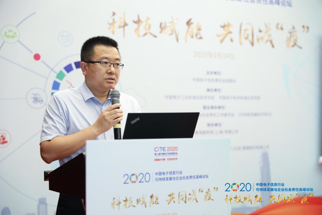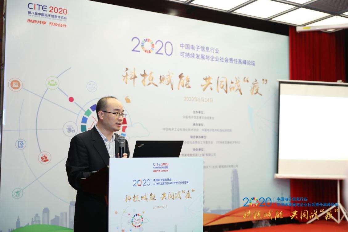 中國電子技術標準化研究院副院長趙新華在致歡迎辭時表示:企業(yè)社會責任建設受到社會各界的廣泛關注,對于企業(yè)的發(fā)展也具有重要的價值和意義。2020年面對突如其來的新型冠狀病毒肺炎疫情,電子信息行業(yè)企業(yè)充分發(fā)揮自身專業(yè)優(yōu)勢,堅持責任為先,迅速采取行動,秉承可持續(xù)發(fā)展理念,堅持理性賦能、科技賦能,成為了抗擊疫情的重要力量,展現(xiàn)了企業(yè)對社會的責任擔當。通過對電子信息行業(yè)企業(yè)抗擊疫情過程中典型經(jīng)驗和做法的總結、探討與分享,將為在疫情常態(tài)化防控形勢下企業(yè)如何更好地實現(xiàn)可持續(xù)發(fā)展,更好地履行企業(yè)社會責任,更大程度地創(chuàng)造綜合價值提供借鑒與思考。