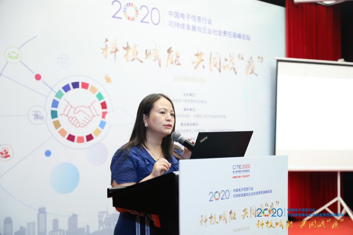 工業(yè)和信息化部產(chǎn)業(yè)政策與法規(guī)司綜合處處長徐華在致辭中表示:面對新型冠狀病毒肺炎疫情的洶涌來襲,電子信息行業(yè)企業(yè)積極承擔社會責任,構筑起了戰(zhàn)“疫”堅固防線,充分發(fā)揮自身專業(yè)優(yōu)勢,運用信息技術能力,為抗擊疫情、復工復產(chǎn)做出了積極貢獻。產(chǎn)業(yè)政策與法規(guī)司作為工業(yè)和信息化部負責推動企業(yè)社會責任建設的主管司局,為深入貫徹落實黨中央國務院關于企業(yè)社會責任工作的要求,進一步加強新時代工業(yè)通訊業(yè)企業(yè)社會責任的建設,2020年,我們積極推進《關于推動工業(yè)通信業(yè)企業(yè)社會責任指導意見》的研究與出臺,探索建立企業(yè)社會責任意識和能力提升機制,推動企業(yè)社會責任培訓和宣傳交流工作。同時,通過搭建企業(yè)社會責任公共服務平臺,為宣傳企業(yè)社會責任政策和為企業(yè)開展社會責任信息披露及溝通交流提供服務。