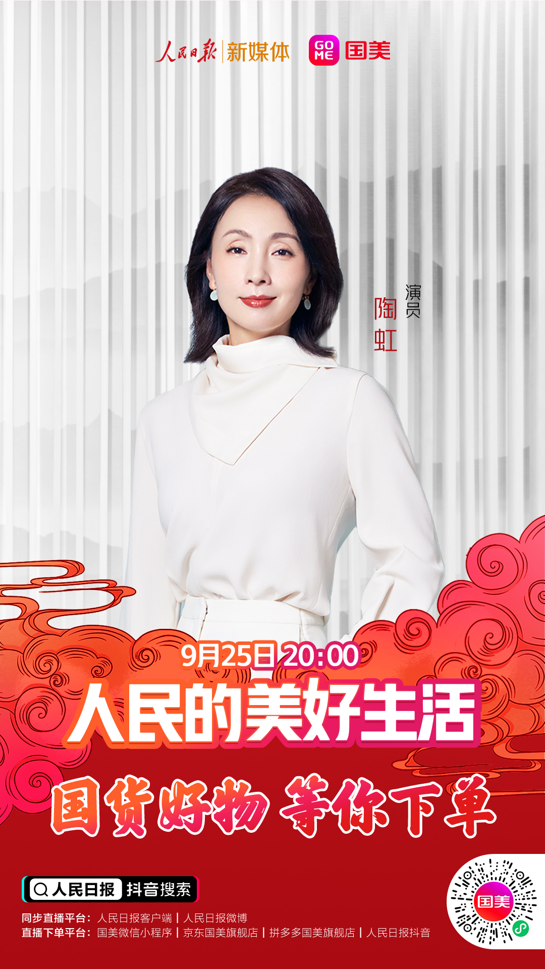 9月25日(周五)晚20點(diǎn),鎖定人民日報(bào)抖音號、國美商城抖音號、國美微信小程序、國美京東旗艦店、國美拼多多旗艦店,關(guān)注直播,國貨好物,等你下單!人民的美好生活,不能少了你?。ǔ\娖剑?/p>
