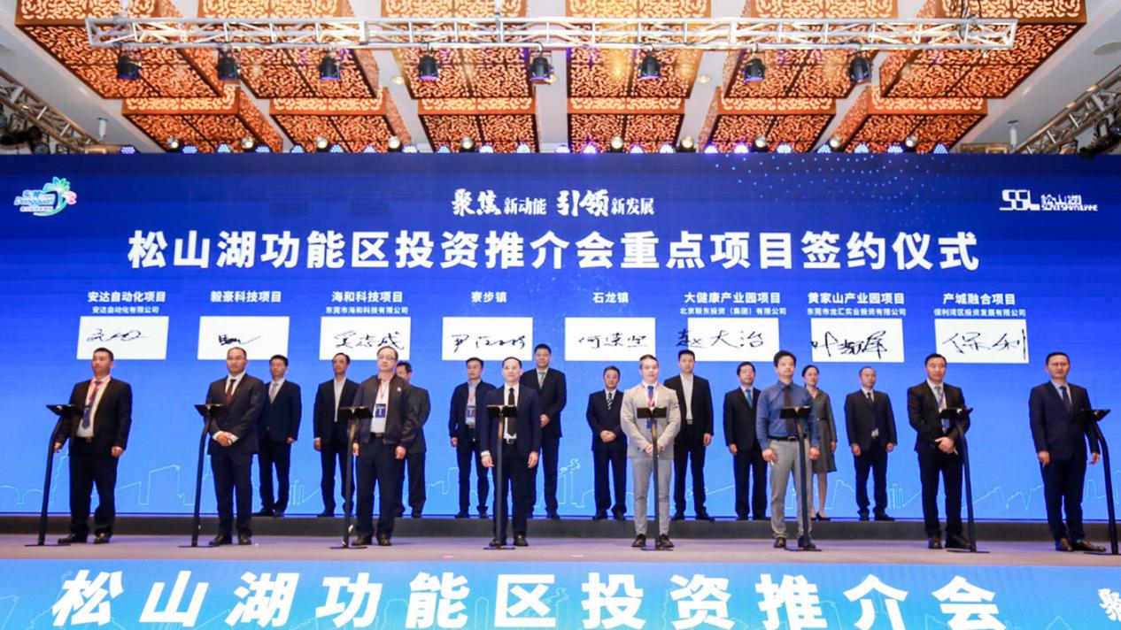 作為本次投資推介會重頭戲之一,安達自動化項目、盛茂源項目、凱金新能源項目、阿里云項目、勝藍科技項目等29個項目,在活動現(xiàn)場舉行集體簽約儀式,協(xié)議投資額約350億元。項目分布范圍覆蓋松山湖高新區(qū)及周邊九鎮(zhèn),產業(yè)類型包括電子信息、云計算、機器人、新材料、文旅開發(fā)、健康醫(yī)療、食品等多個新經濟、新產業(yè)領域,將有力促進功能區(qū)補鏈強鏈。