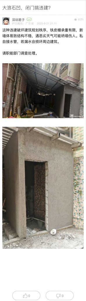 30. 帖文《投訴羅湖區(qū)蓮塘街道畔山路43號(hào)長(zhǎng)期明顯違建!(八)》