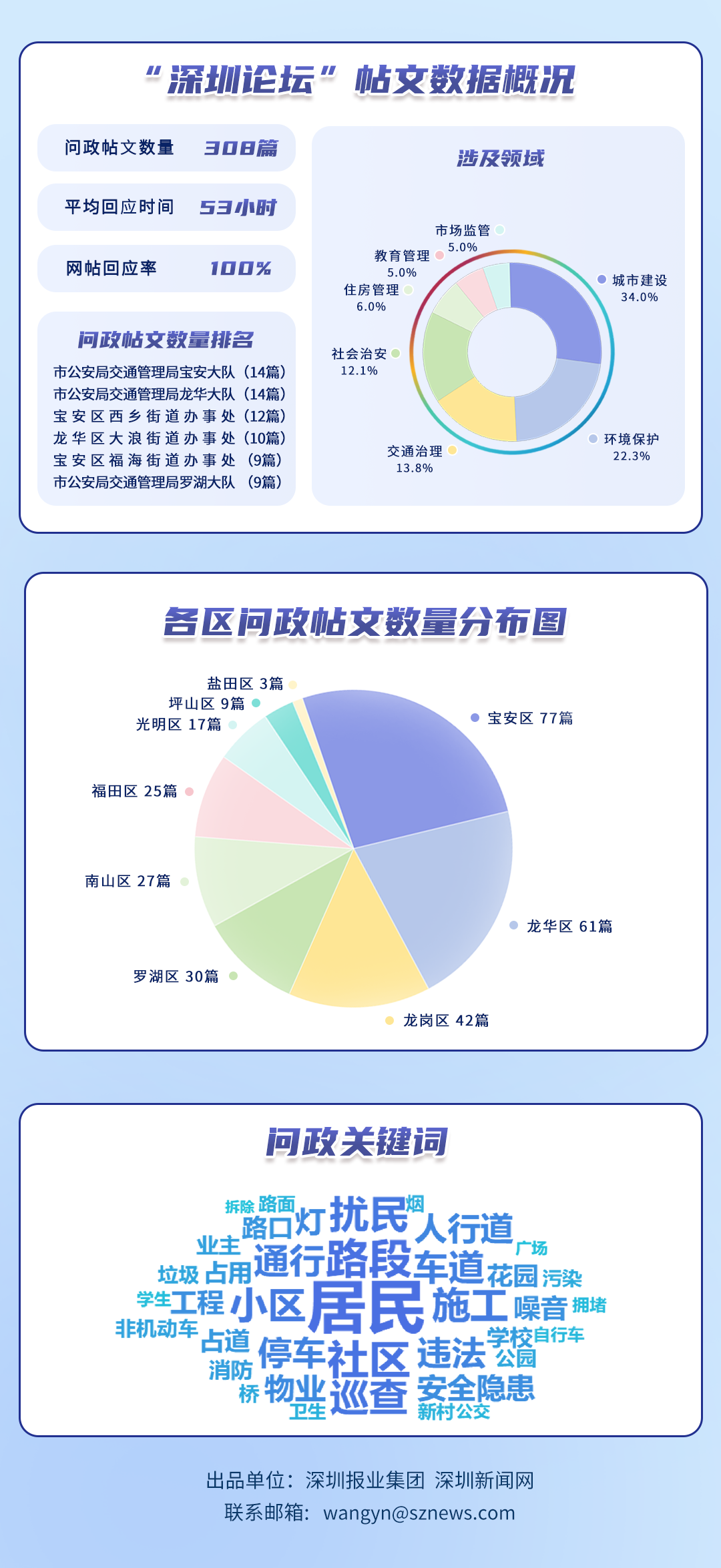 榜單帖文數(shù)據(jù)源自深圳論壇,均為網(wǎng)民點(diǎn)名希望涉事單位回應(yīng)的網(wǎng)帖,共涵蓋114個(gè)單位、308篇網(wǎng)帖。所采集帖文發(fā)布時(shí)間為2025年11月1日至11月30日,采集截止時(shí)間為2025年12月1日。