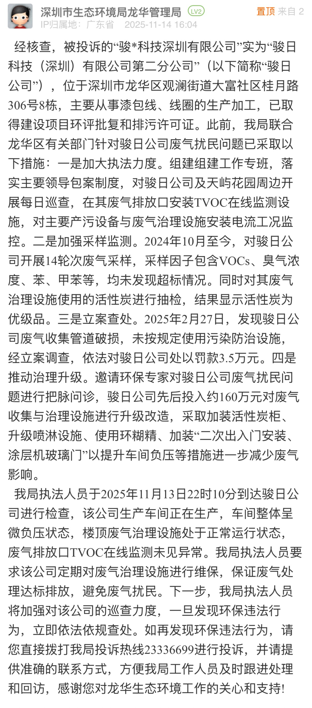 涉事單位:市生態(tài)環(huán)境局龍華管理局
